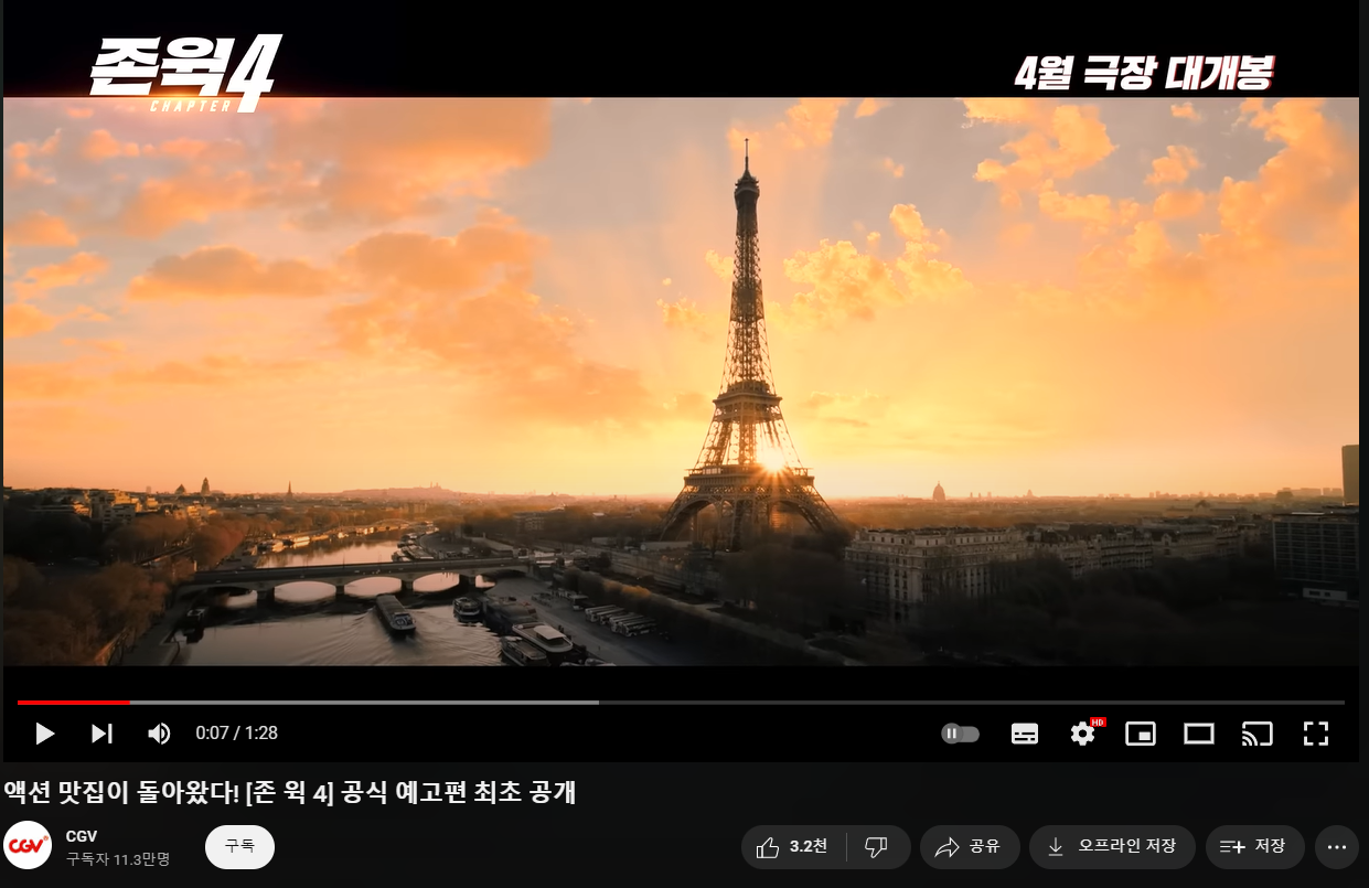 그다음에 존윅 예고편을 기준으로 존윅4 출연진을 일일이 다 설명하겠습니다. 저는 영화를 실제로 극장에서 본 사람이니까 정확합니다.