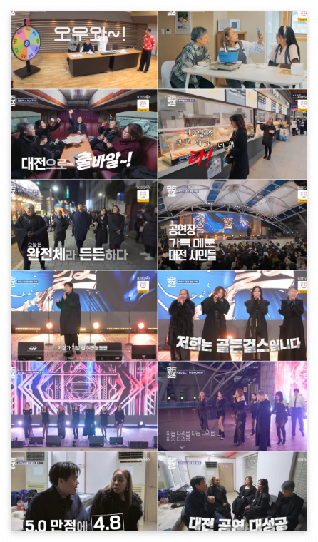 대망의 '골든걸스' 첫 지방 공연이 성황리에 열렸어요. 🌟 추운 날씨에도 불구하고 많은 대전 시민들이 모여 뜨거운 환호를 보냈답니다. 이에 '골든걸스'는 섹시한 매력을 선보이며 멋진 공연으로 화답했죠. 💃 '골든걸스'의 최근 방송 시청률은 전국 3.4%, 수도권 3.2%를 기록했어요. 이전 회차보다 0.2% 상승한 숫자에요. (닐슨코리아 기준)📈 지난 19일 KBS2에서 방영된 '골든걸스' 11회에서는 대전에서의 첫 지방 공연이 그려졌어요. 🎤 박진영은 신곡 '더 모먼트'를 녹음하며 '골든걸스'의 감정을 끌어올리는 데 집중했어요. 그리고 멤버들은 노래 가사에 완전히 몰입하며 녹음을 빠르게 마쳤죠. 👏 박진영은 돌림판을 이용해 '골든걸스'에 첫 지방 공연 소식을 전했어요. 🎉 이들은 신효범이 돌린 돌림판으로 대전을 첫 공연 장소로 정했고, 새해 첫날부터 합숙과 연습으로 바쁜 일정을 소화했어요. 🏃♀️