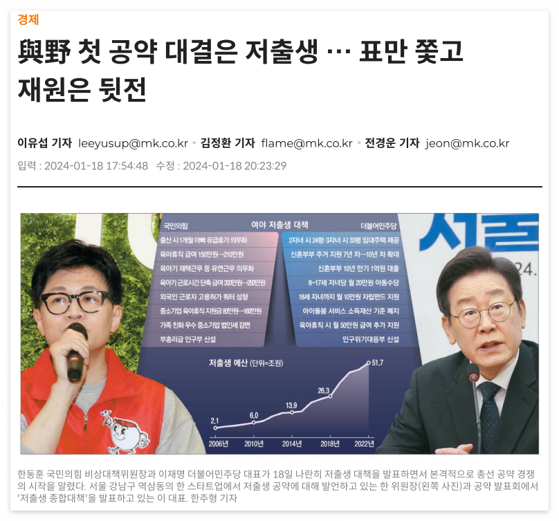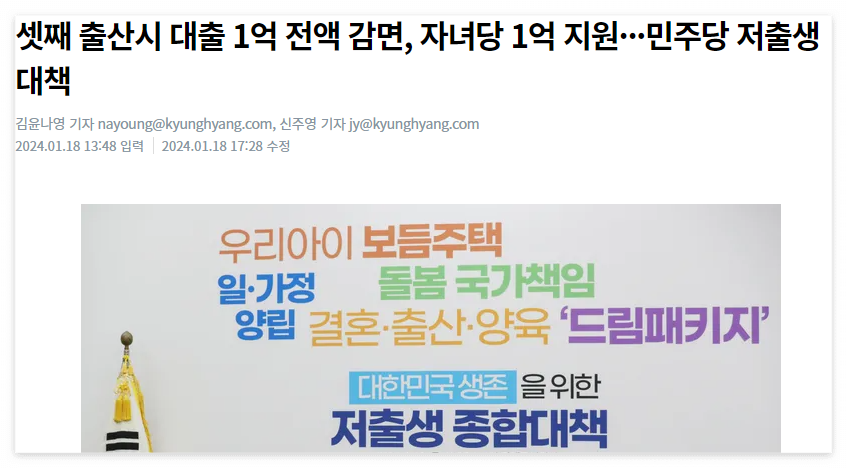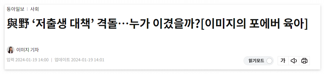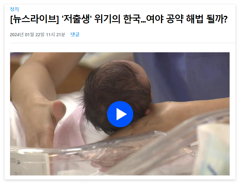 '저출생 정책' 관련 기사 아래 기사 사진을 누르면 구체적 내용을 알 수 있습니다.