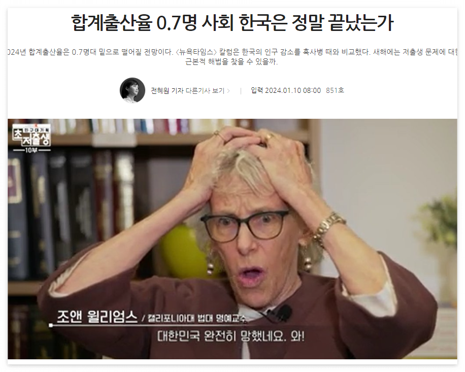 ' 인구 감소로 이어질 수 있는 매우 심각한 수준' 관련 기사는 아래 기사