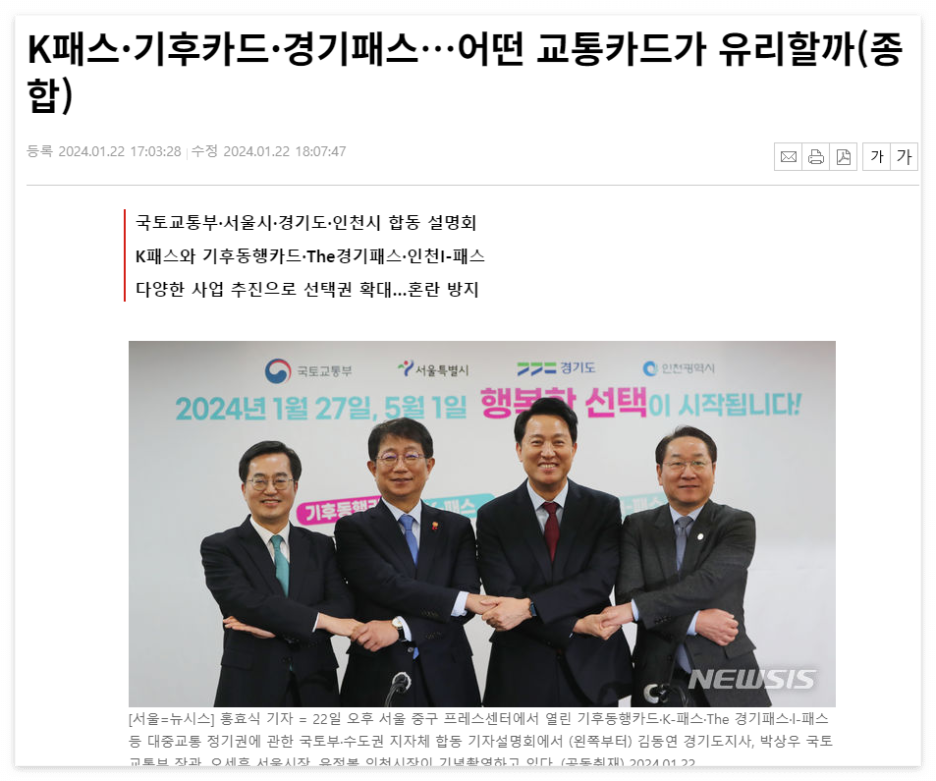 정부와 서울, 경기, 인천 지자체가 지역별로 대중교통비 지원 시스템을 출시하여 이용객들의 선택권을 증가시키겠다고 밝혔습니다. 국토교통부는 K-패스라는 대중교통비 지원사업을 금년 5월부터 시작하여 청년, 서민 등 부담을 완화하고 수도권 3개 지자체를 포함한 전국 17개 시·도(189개 시·군·구)와 협의를 완료하여 사업을 준비 중입니다. K-패스는 월 15회 이상 대중교통을 이용할 경우, 일반인은 20%, 청년층은 30%, 저소득층은 53%의 비율로 지출 금액을 다음 달에 돌려받는 교통카드 시스템입니다. 서울시는 대중교통을 활성화하고 교통비 부담을 완화하기 위해 기후동행카드 사업을 시작할 예정입니다. 이 카드는 월 6만원대로 서울시내 대중교통을 무제한 이용할 수 있으며, 따릉이를 포함하면 6.5만원, 따릉이를 제외하면 6.2만원이 될 예정입니다. 아래 사진을 누르면 기사 원문 볼 수 있어요.