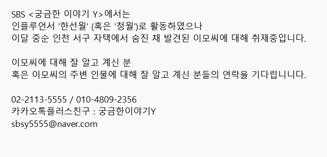 현재 SBS의 '궁금한 이야기 Y' 제작진이 이 사건에 대한 취재를 시작했다고 합니다. 제작진은 한선월 씨와 그의 주변 인물들에 대해 잘 아는 분들의 제보를 기다리고 있다고 밝혔습니다. 이를 통해 제기된 의혹들에 대한 실마리가 풀릴 수 있을지 주목되고 있습니다.