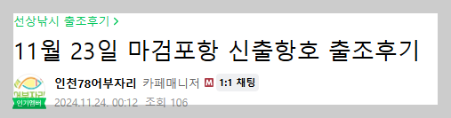 신출항호에 대해서 궁금하신 분은 낚시꾼들의 네이버 카페로 들어가서 실제로 탄 후기를 보실 수가 있습니다. 아랫글을 눌러보세요. 정확하게 신출항호를 탄 분들의 실제 경험담이 적혀있습니다.