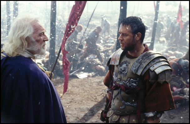 영화는 유화풍 애니메이션으로 막시무스의 최후를 보여주며 시작됩니다. 마르쿠스 황제의 사망 16년 후, 쌍둥이 황제 게타와 카라칼라의 폭정으로 로마는 몰락의 길을 걷고 있습니다. 시대적 배경은 세베루스 왕조의 전기로, 카라칼라와 게타 형제가 공동 통치하던 시기입니다. 평화로운 아프리카 누마디아에서 부인 아리샷과 살던 하노(루시우스)는 로마군의 침공으로 인생이 송두리째 바뀌게 됩니다. 노예가 된 그는 마크리누스의 눈에 들어 검투사로 발탁되어 콜로세움에 입성합니다.