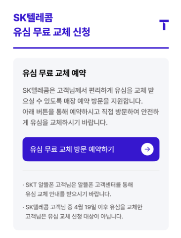 1. 전국 SK텔레콤 T월드 매장 유심 무료 교체와 온라인 예약 시스템 도입