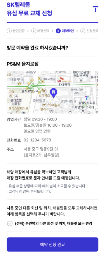 유심 무료 교체 예약 시스템은 웹페이지 care tworld co kr 나 T월드 홈페이지 초기 화면 배너 검색 포털 사이트를 통해 접속할 수 있습니다. 예약 절차는 간단합니다. 고객은 휴대폰 본인 인증을 통해 성명 주민등록번호 앞자리 보안문자 번호 고객 전화번호 등을 확인한 후 원하는 매장을 선택해 신청할 수 있습니다. 매장 선택 시에는 매장명이나 주소를 검색하거나 필터링 기능을 활용해 현재 신청 가능한 매장을 쉽게 찾을 수 있습니다. 또한 매장의 위치 영업시간 연락처 등의 정보도 함께 제공되어 고객들이 편리하게 방문 계획을 세울 수 있습니다.