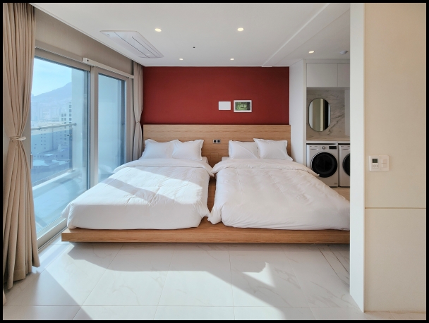 타월 슬리퍼 화장지 전기 주전자 및 테이블 옷장과 옷걸이 개별 냉난방 조절이 기본입니다. 법 개정에 따라 샴푸 린스 바디워시 등 세면도구는 유료로 현장에서 안내받으실 수 있습니다. 객실은 여행 중 필요한 기능을 중심으로 합니다. 깔끔한 위생 상태를 유지합니다. 블루엘리펀트 매장 방문 후 편안한 휴식을 취합니다. 공용 공간으로는 부산항 방향 전망의 테라스가 있습니다. 로비 공간도 일정 정리나 대기 시 이용 가능합니다. 편의 시설은 고객님의 만족을 위해 준비됩니다. 체크인 밤 10시까지 체크아웃 오후 3시입니다. 늦은 체크아웃으로 다음 일정을 여유롭게 합니다. 밤 10시 이후 도착 시 체크인이 불가하니 도착 시간을 확인합니다.