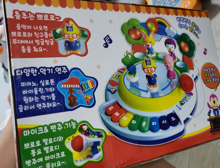 제발 보고 뽀로로와 친구들을 안 던져줬으면. 별점은 너무 엉망이라서 1점뺐지만 나름 재밌는 장난감인 것 같아용 사신분들 박스 바로 버리지마셔요 악보들어있어요!! 전 모르고 버릴뻔했네요 ㅎㅎ 오늘도 모든 육아맘님들 화이팅입니다 !!