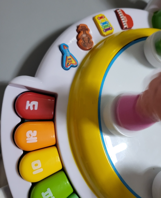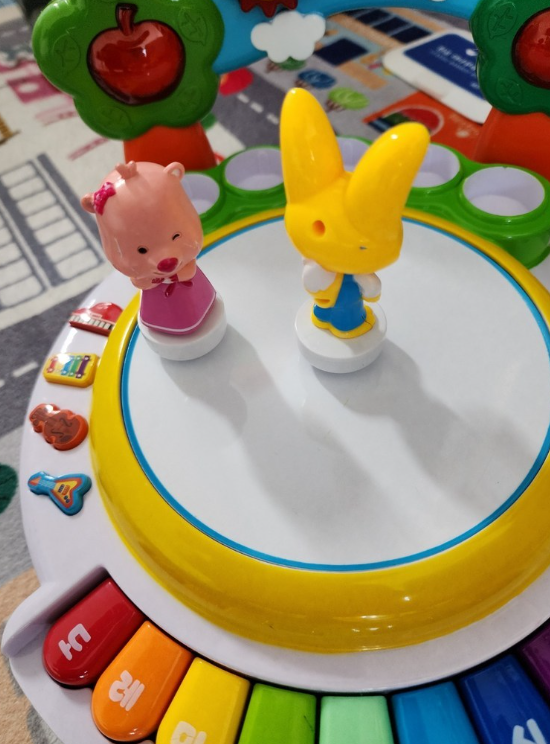 마이크가 있어 반주에 맞춰 노래를 부를 수 있어요.(아기는 아직 어려서 제가 부르며 더 신이날 때도 있어요. 이렇게 좋은 점이 많은 장난감이네요. 비슷한 놀잇감이 있어 몇달 고민했는데 그냥 일찍부터 살 걸 그랬네요. 아기도 정말 좋아하구요! 피규어들이 올라가 빙글빙글 돌면 다 잡아서 밑으로 떨어뜨리지만요. 그거에 재미를 느끼는듯 해요!! 마이크는 먹는 거처럼 생겨서 그런지 계속 빨아먹고 선까지 빨아먹을 기세라서잠시 떼놓었어요! 앞으로도 빙글빙글 노래방으로 아기랑 쭈욱~ 잘 놀이해보려구요. 아기도 재밌게 가지고 놀고, 가지고 노는 동안 잠깐의 다른 일도 할 수 있고 커피 한 모금 마실 수 있어서 좋은 놀잇감이에요^^* 육아맘, 아빠님들 빙글빙글 뽀로로 노래방과 함께 다들 육아 힘내세요.