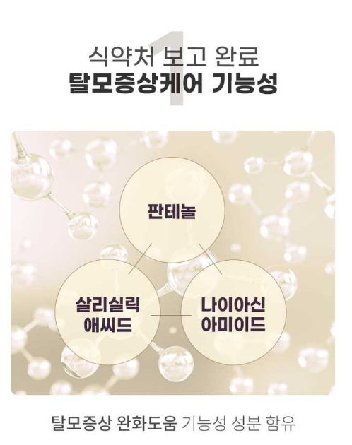 4주 만에 확실한 탈모증상완화 : 빠지는 모발 감소 59% 2) 6주 사용시 빠지는 모발 감소 71%